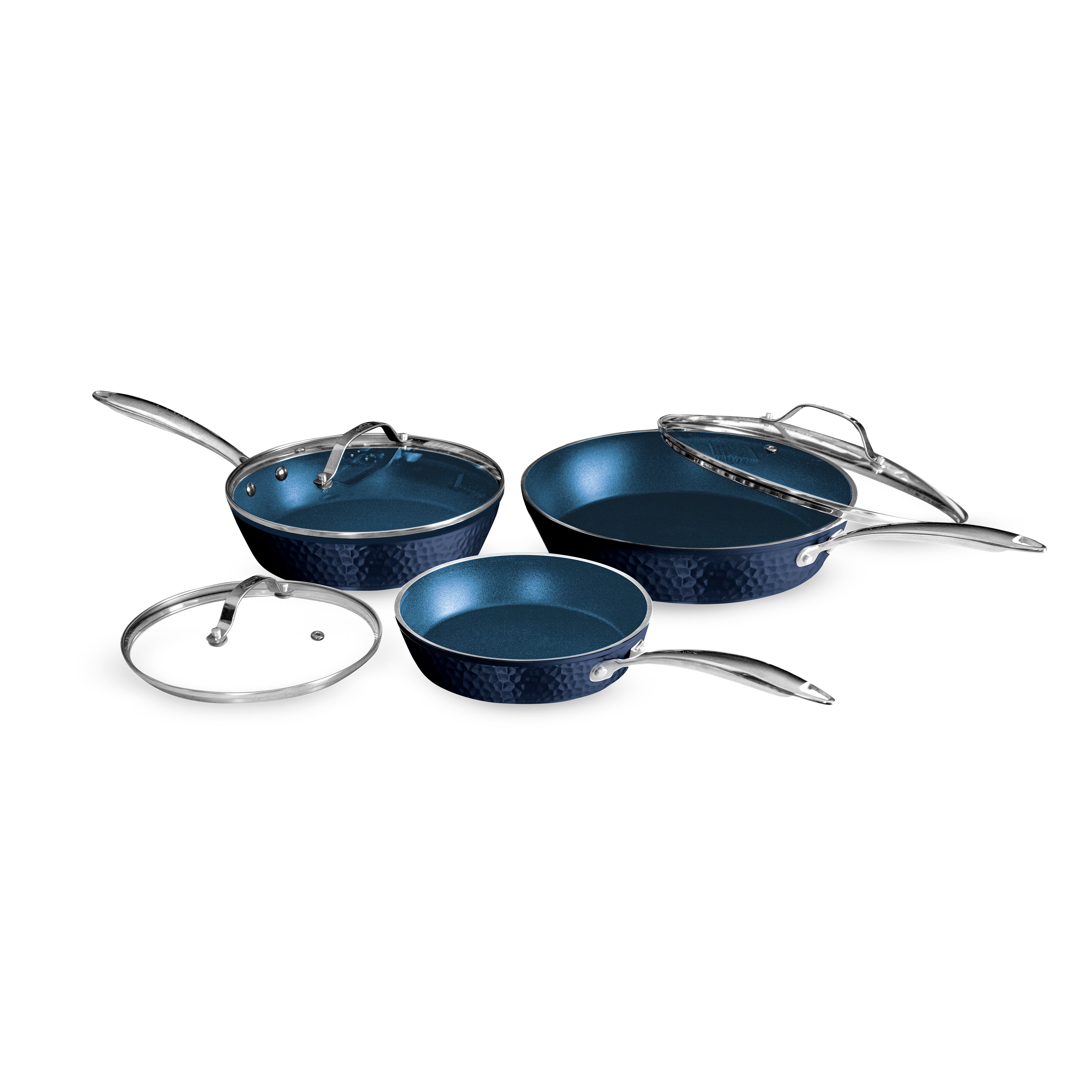 We use a superior 3x diamond, 6th generation granite non-stick coating. Our award-winning coatings are ultra-durable inside and out, scratch-proof, and metal utensil safe.